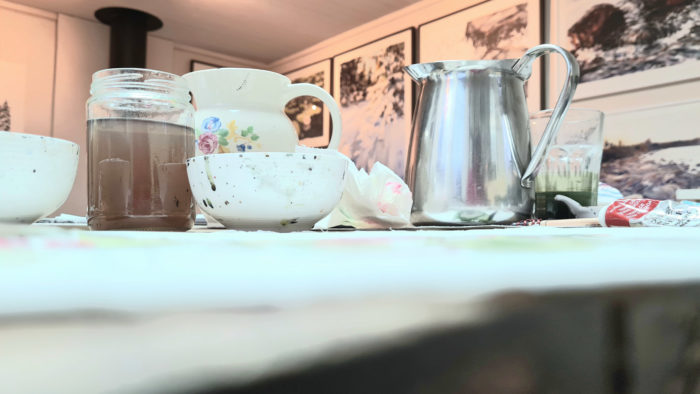 Det svåra är rytmen. Akvarellmåleri och bebisar har det gemensamt att de är ganska bestämda om när saker och ting ska ske. Mycket av akvarellarbetet handlar om timing. Att avgöra när papperet är lagom vått eller torrt för olika interventioner. Ett penseldrag vid fel tidpunkt skapar helt andra effekter än den man hoppades på. Alva är lite likadan. Det går inte gärna att skjuta upp amningen till ett tillfälle som passar akvarellen bättre.