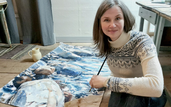 “Mina största målningar är drygt 1×2 meter stora och de tar många veckor att färdigställa”