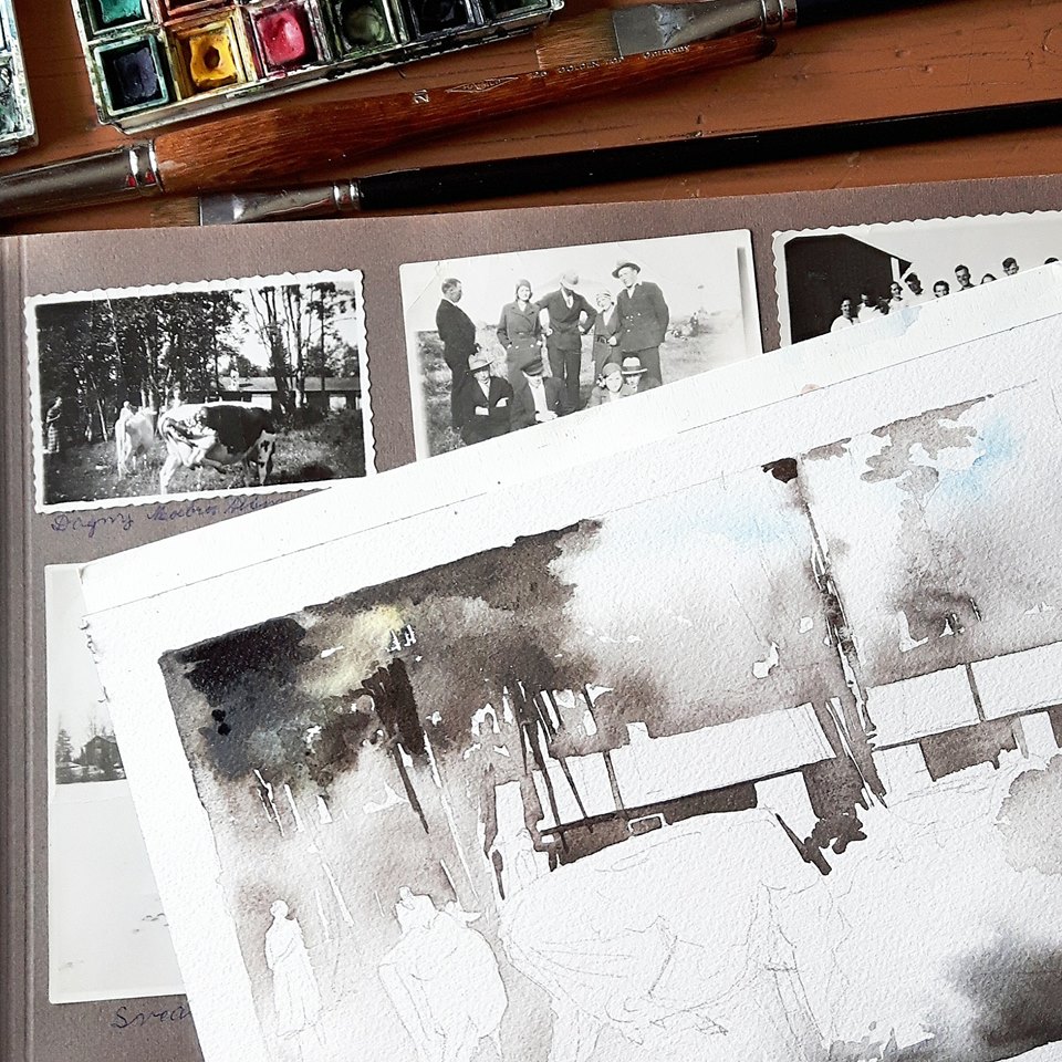 Men låt oss börja från början. Redan innan du börjar skissa bör du dyka ner i vattenburken, för att få ditt papper i bästa möjliga skick att måla på.