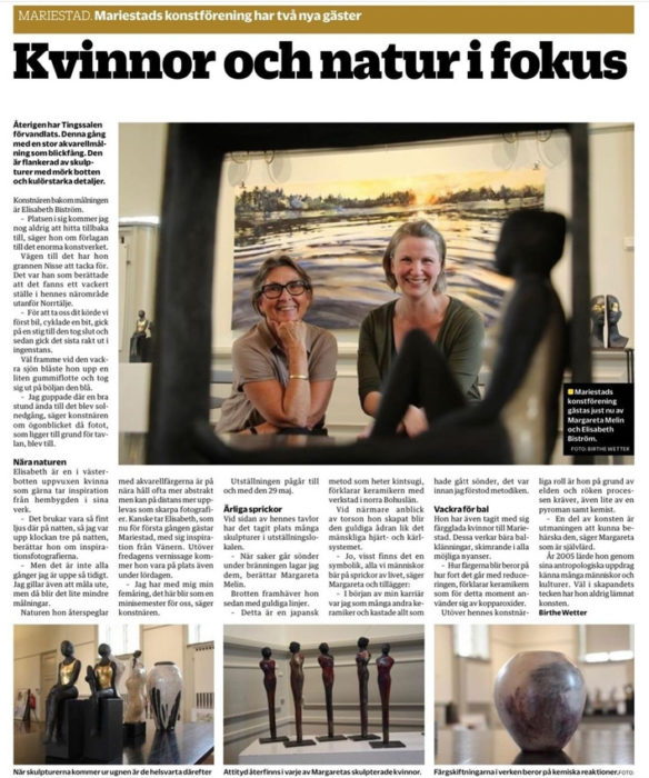 I Mariestad ställde jag ut tillsammans med skulptör Margareta Melin. Mariestads-Tidningen skrev om utställningen.