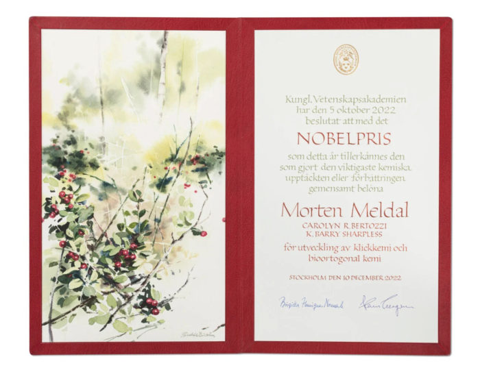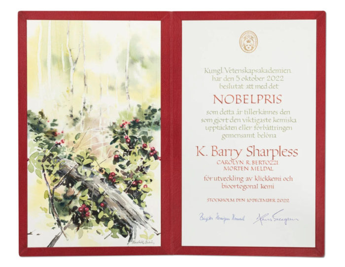 Nobelpriset i kemi gick i år till K. Barry Sharpeless, Carolyn R. Bertozzi och Morten Meldalför utveckling av klickkemi och bioortoginal kemi.