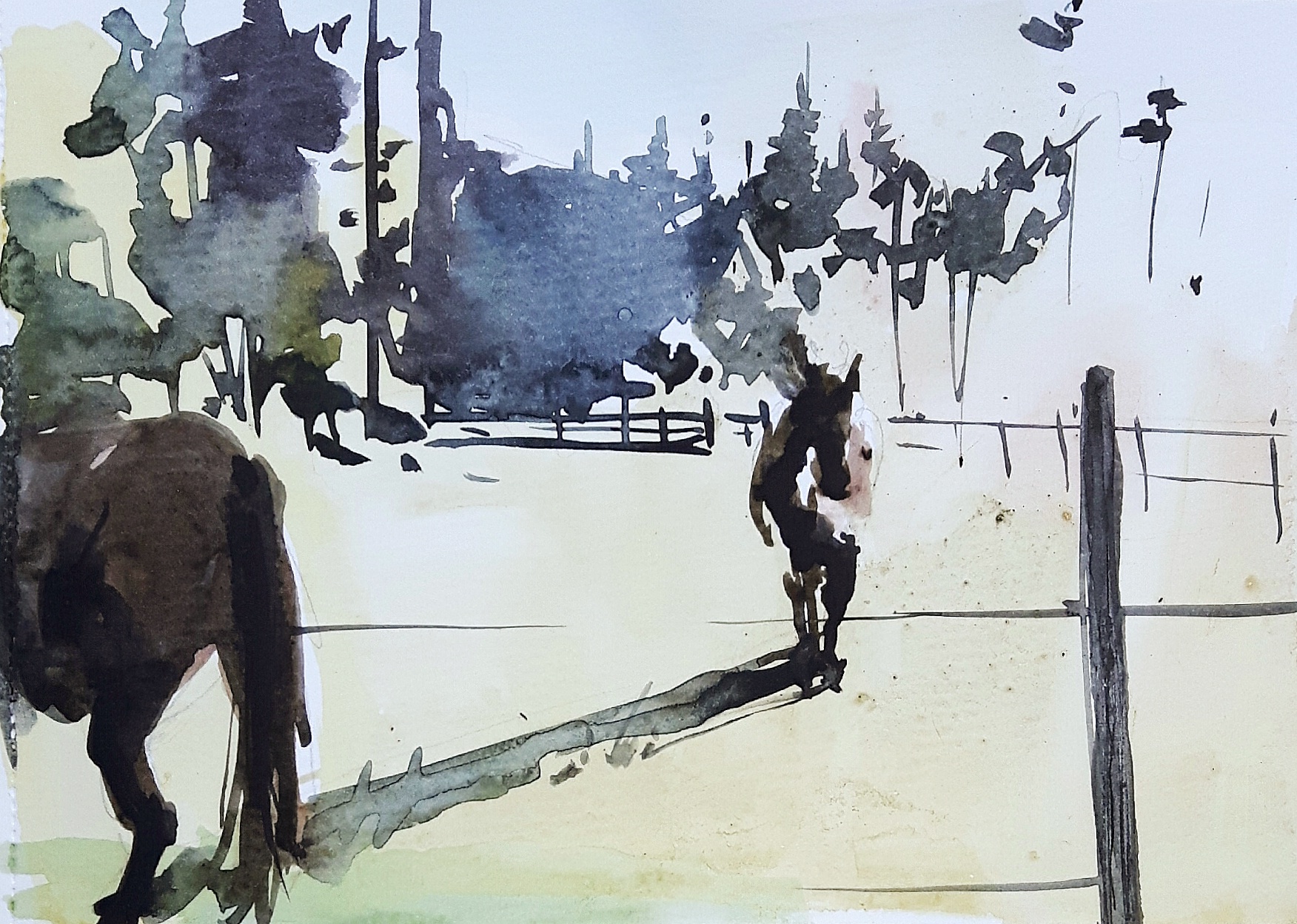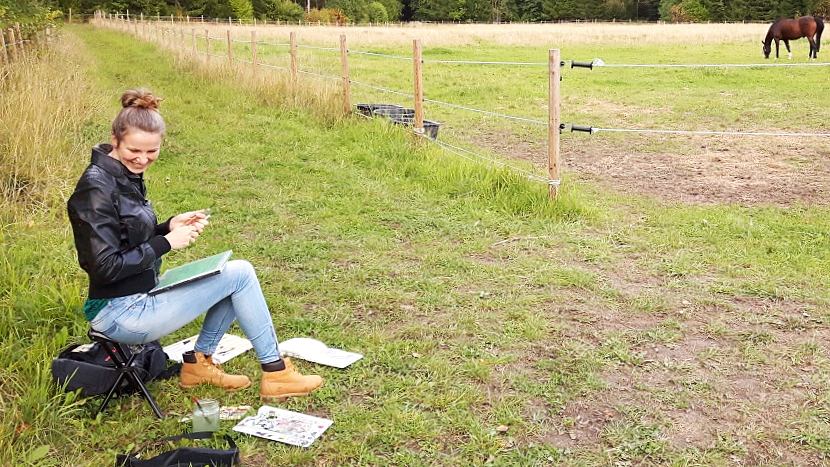 Dagen rullade sedan på ganska snabbt. Jag beskrev i ett inlägg i akvarellskolan förut detta med att man kan tappa tidsuppfattningen när man målar. En effekt av att det framförallt är den högra hjärnhalvan – som inte kan klockan – som är aktiverad. Det är ett spännande och himla skönt tillstånd att befinna sig i.