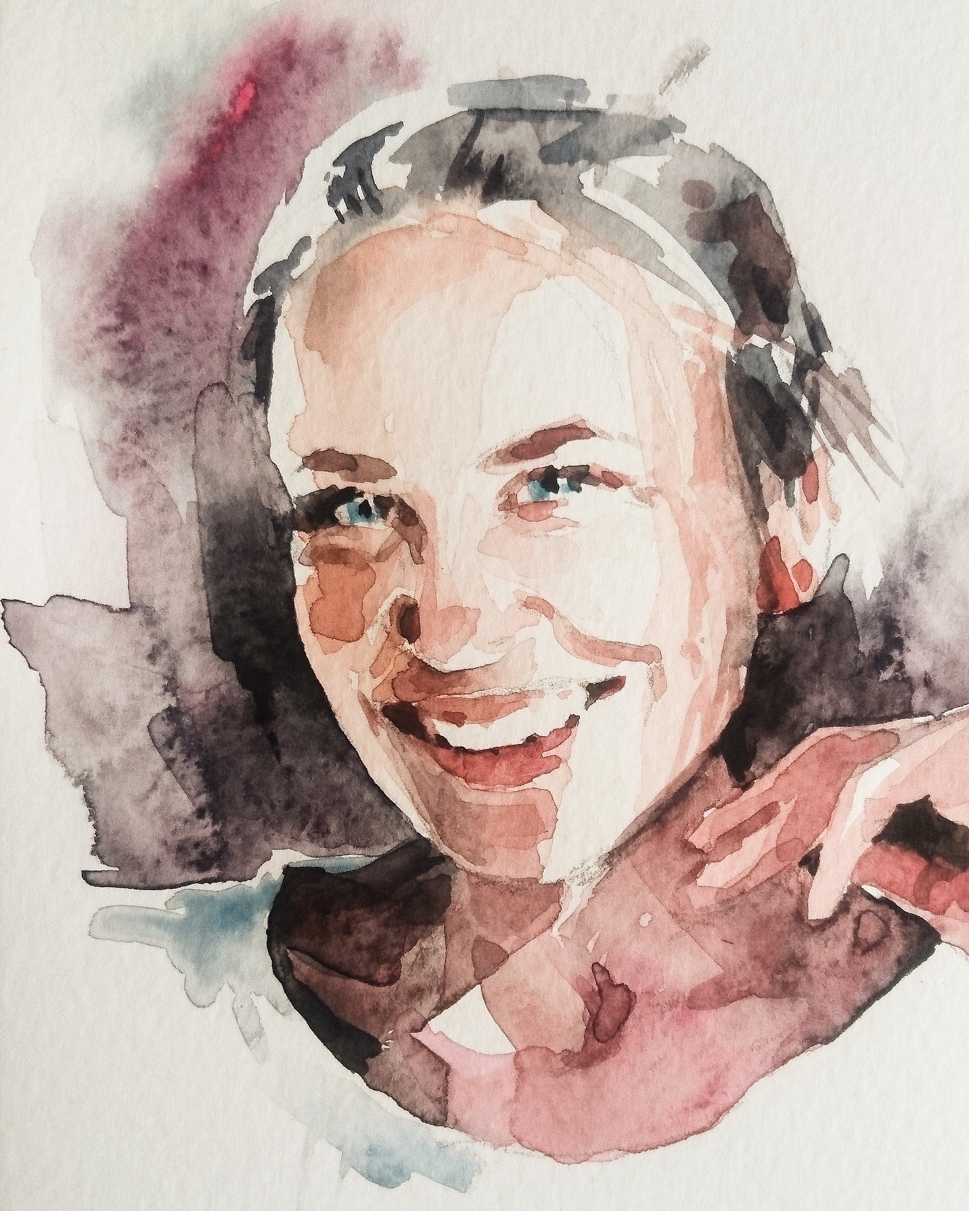 Akvarelltekniken har fördelen att den tvingar en att pausa då och då medan olika färgskikt behöver torka. Tur det, för annars hade jag kunnat hoppa över alla måltider en dag som den här. Jag har det så himla bra vid det där målarbordet, med Lugna Favoriter-hits i radion att nynna med i och i övrigt bara bilden, färgen och vattnet att koncentrera mig på.