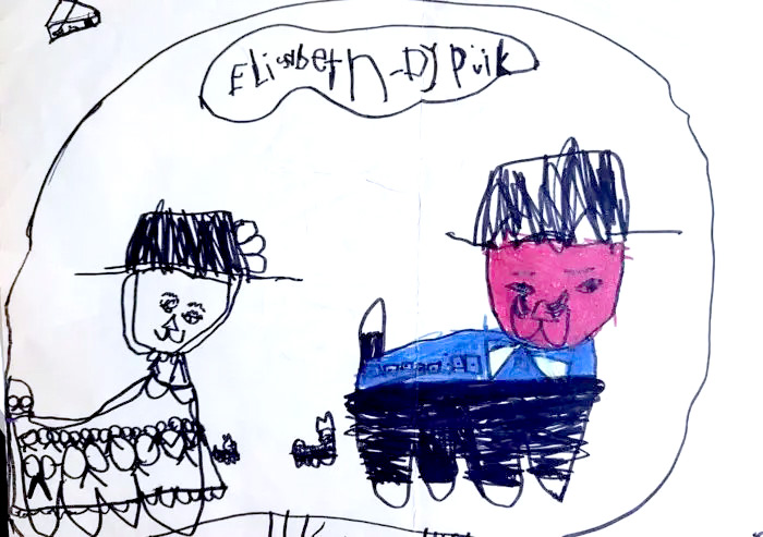Jag vet att det kan kännas klumpigt och pinsamt att måla sådant man inte behärskar. Jo faktiskt – jag kan inte heller måla cyklande elefanter särskilt bra! Jag lider av medeldålig fantasi. Har inte memorerat olika djurarters anatomiska särdrag. Mina fantasihästar har påfallande ofta en ofördelaktig likhet med älgkalvar. Men jag ritar dem gärna ändå, utan att nagelfara dem och berätta om deras tillkortakommande. Jag skulle inte ställa ut älghästarna på galleri – men när jag ritar tillsammans med barn, så är det skapandet, leken och glädjen som är det viktiga. Inte resultatet, varken deras eller mitt. Medveten om att jag som vuxen är en förebild, behandlar jag mina alster på samma sätt som jag behandlar deras: med respekt och nyfikenhet. Jag använder samma språkdräkt för att prata om mina bilder. Det kan låta “hästen ser ganska glad ut – tror du hon har gjort någonting kul idag?”, eller “jag tror att den här elefanten ska bli grön med lila prickar, vilken färg ska din elefant få?”