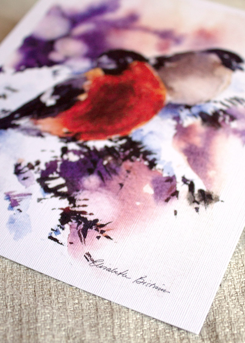Att skicka julkort till nära och kära är en fin tradition. En enkel, men betydelsefull handling för att visa omtanke. Därför har jag gjort en liten upplaga med ett stämningsfullt akvarellmotiv, tryckt på vackra kort med linnestruktur.