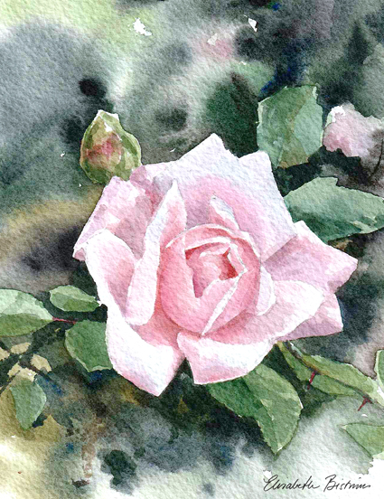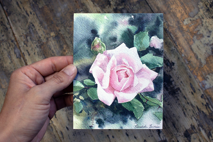 Vykort med ett rosenmotiv utifrån en originalakvarell av Elisabeth Biström.