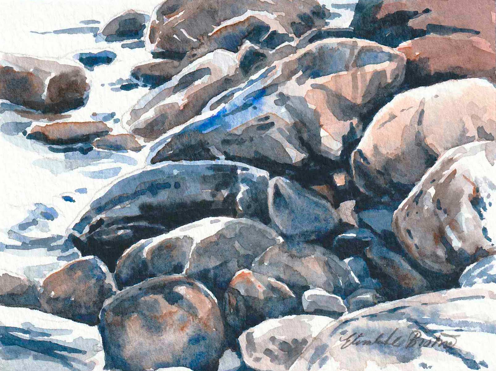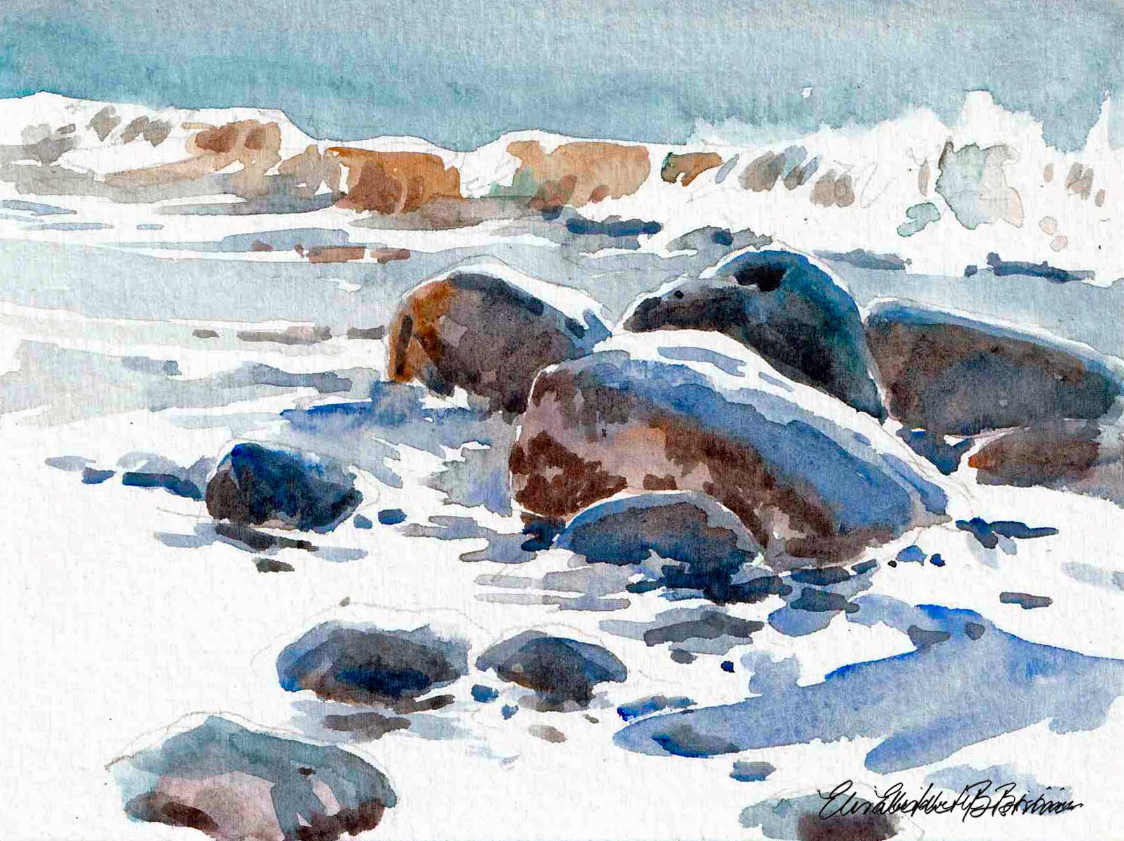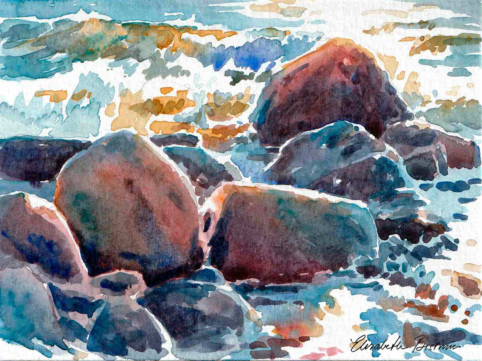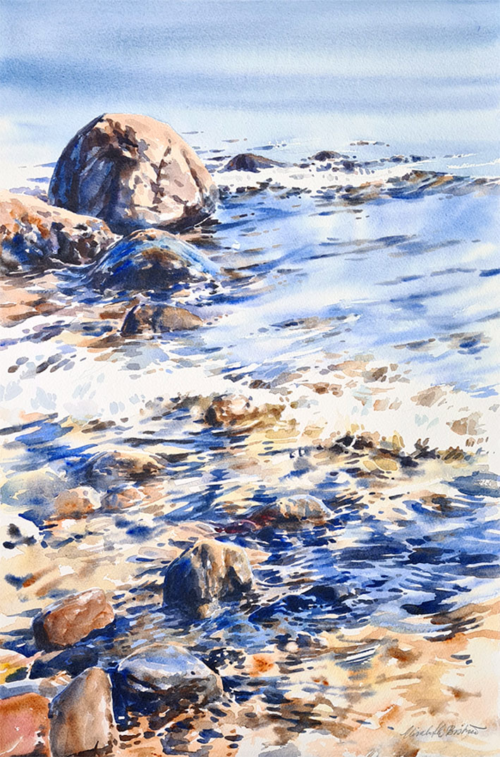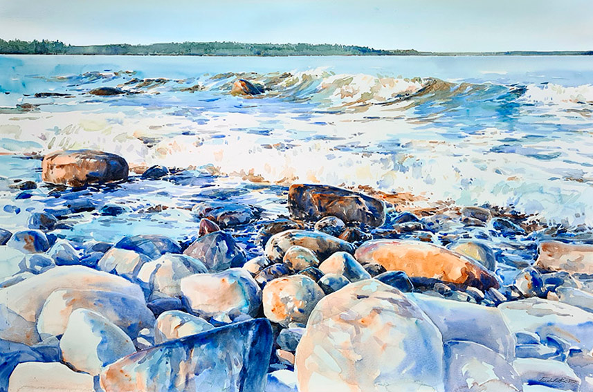 I trettio år har jag målat platsen som den här utställningen handlade om. Jag är en upprepningsmänniska. Läser samma böcker och ser samma filmer om och om igen. Livet är förändring och jag vill inte streta emot. Men att ha en fast punkt i livet, där stenblock och horisont ligger stadigt, känns tryggt.